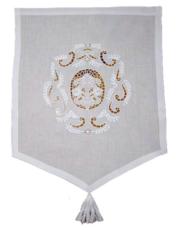 Rideau brodé main.